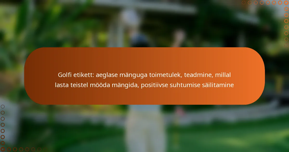 Golfietikett on ülioluline sujuva ja nauditava kogemuse tagamiseks väljakul, eriti aeglase mängu haldamisel. Kiiremate gruppide mängu läbi laskmise hetkede äratundmine ja positiivse suhtumise säilitamine võivad oluliselt parandada mängu kõigile osalejatele. Teades oma mängutempot ja suheldes tõhusalt, aitad luua kõigile golfimängijatele meeldivamat atmosfääri.